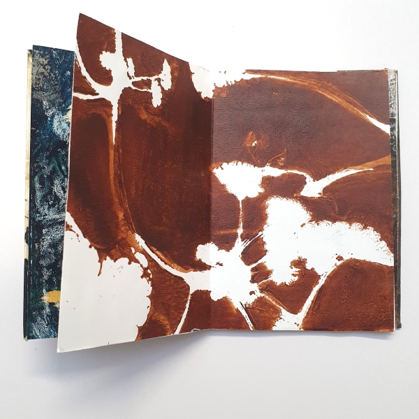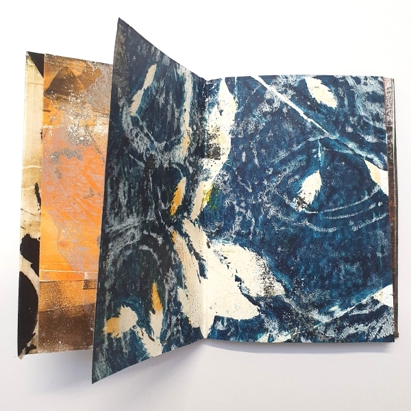 Samenvatting: Ook gelliplate afdrukken die niet interessant genoeg zijn kun je prima gebruiken door er kleine boekjes van te maken.waarin je kunt tekenen, plakken of schrijven.